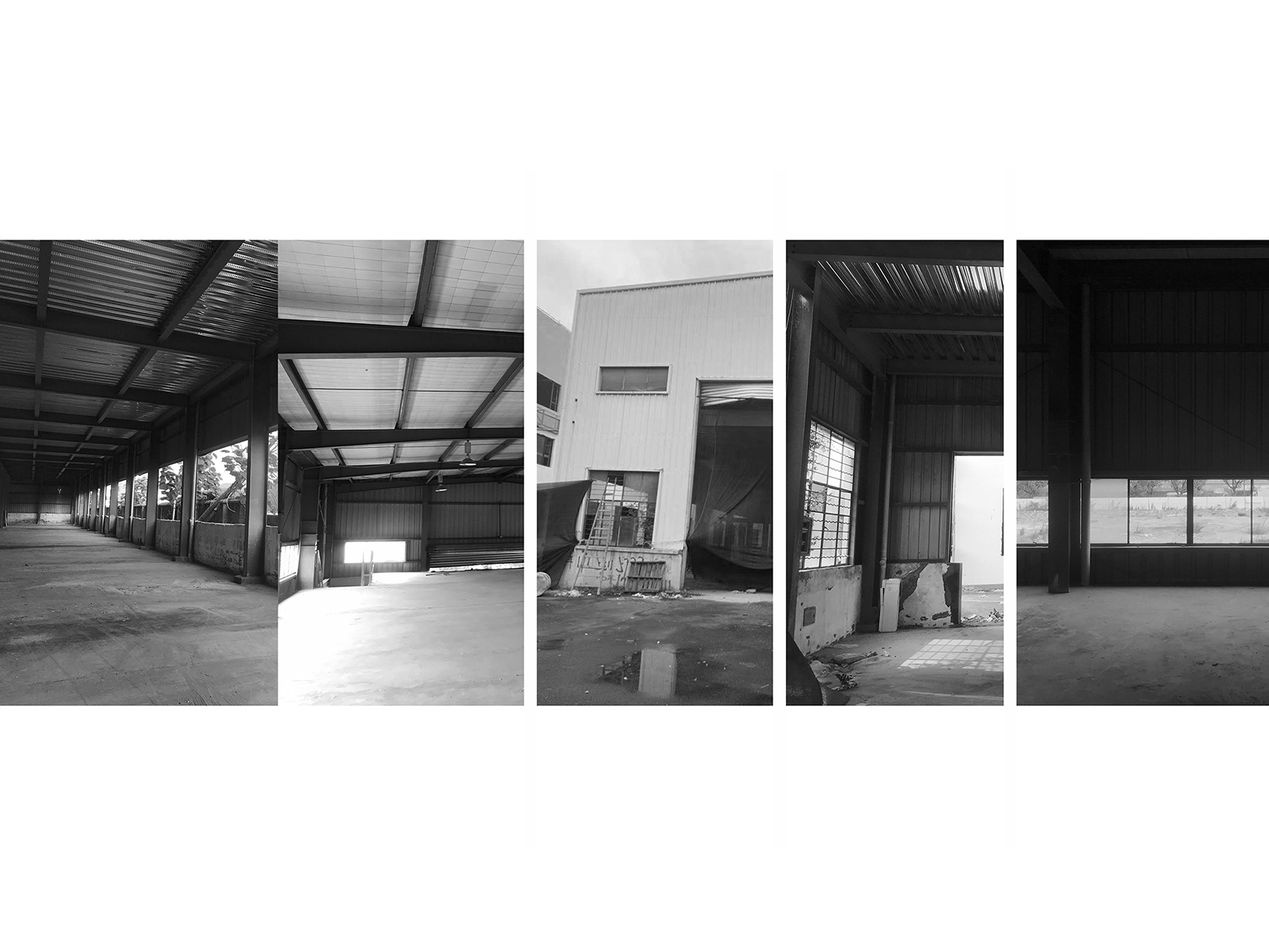 原始建筑概况 Overview of original building 原建筑为一个层高9m的钢结构,彩色压型瓦作为表皮的建筑体,一层为6m*16m的长方形空间,二层为16m*25m的方形空间,如何在这个7字形空间里呈现MOON的专属形象成为此案的一个重要课题。