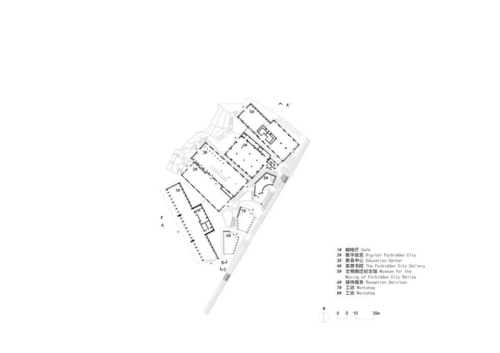 保留青石大台阶,新老建筑分布左右/Preserved bluestone steps between old and new buildings 屋面出檐/The exteriors of the buildings 青石台阶尽端/The top of the bluestone steps 建筑之间/In between spaces 总层平面图/General layout 首层平面图/Ground floor plan AA'剖面图/Section AA' BB'剖面图/Section BB' CC'立面图/Elevation CC' 分析图/Analysis Graph