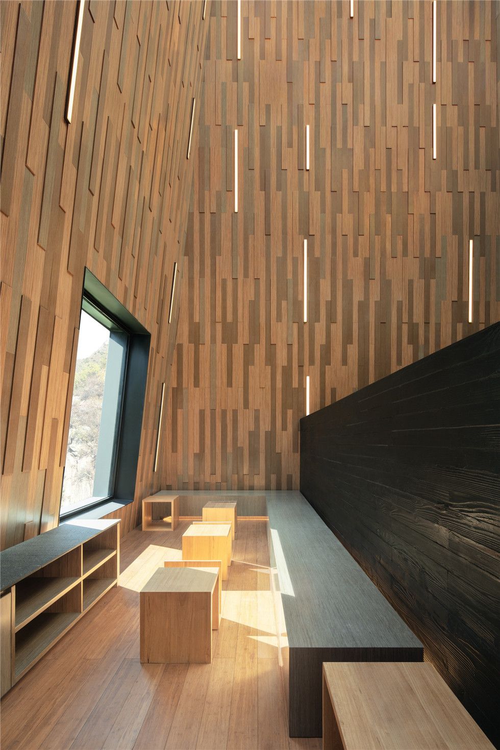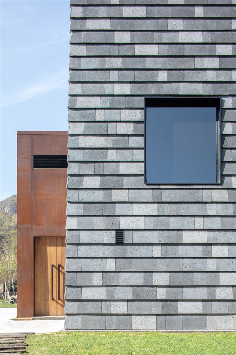 Architecture: Volcanic rock,Glass, Black steel, Rusty steel, Laminated Bamboo