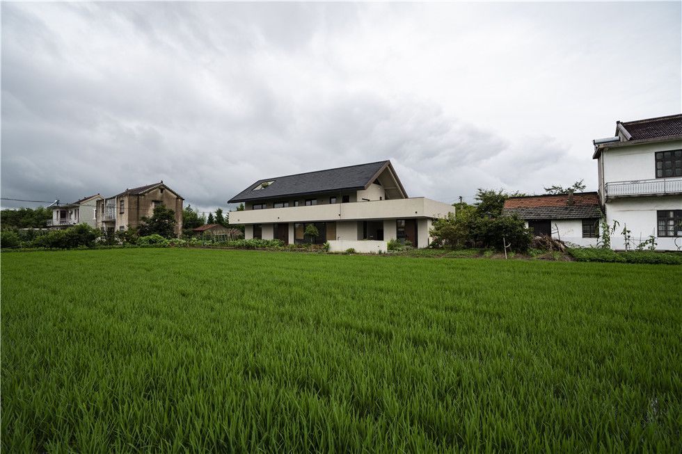 在房子的南侧靠近田野的部分保留了室外菜园和晒场,建筑设计中则强化江南建筑挑檐的语言与低缓的水平线相结合,利用宜人的尺度统一景观与建筑两个部分。 在空间排布方面,强调了室内空间和室外景观之间的高度互访性,将建筑的公共,共有,私有三个部分整合并加以区分。对于室内部空间的排布,满足业主夫妻日常生活和邻里交往成为整理两层空间的关键。 In the south side of the house, the outdoorgarden and sunning ground are reserved in the part near the field. In thearchitectural design, the language of overhanging eaves in the south of theYangtze River is combined with the low horizontal line, and the pleasant scaleis used to unify the landscape and the building. In terms of space arrangement, itemphasizes the high degree of mutual visit between indoor space and outdoorlandscape, and integrates and distinguishes the public, common and privateparts of the building. For the layout of interior space, the key to finishingthe two-layer space is to meet the daily life of the owner and the couple andthe neighborhood communication.