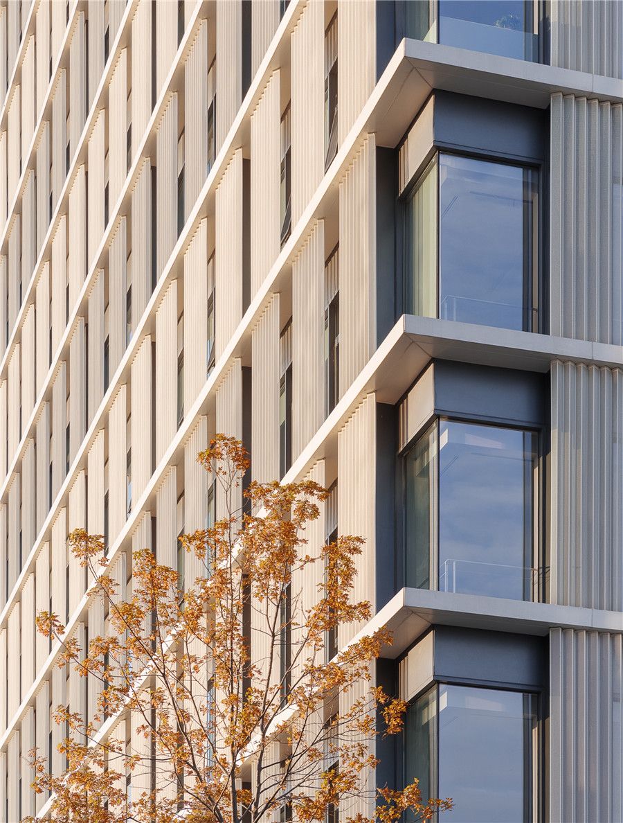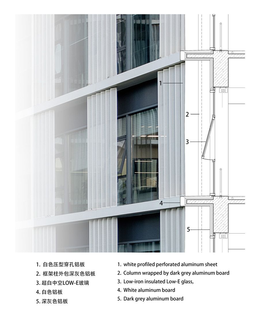 The 4.4-meter-high standardized large space is the main type of idealrental spacefor owners. Therefore, the architectural form of the two towersstill followsthe layout of using space around the core tube, with one span inthe north,East and West and two spans in the south, providing greater spaceflexibilityfor R & D office. At the same time, the corner column and thecorner windowframe are canceled, which improves the use efficiency of theinternal space andthe openness of the corner. Each floor is overhangingoutwards, and verticalaluminum profiled perforated sunshade is set outside thewindow. The width ofthe north and South panels is narrow, and the width of theEast and West panelsis wide, which not only saves energy, but also takes intoaccount the influenceof the orientation.