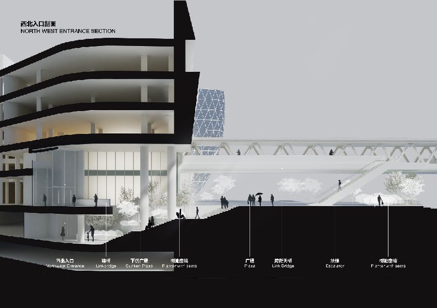 ▲西北下沉广场剖面透视 © 吴鉴泉