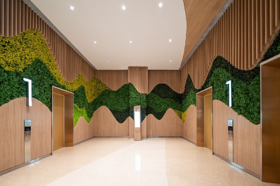 ▲电梯厅运用绿植美学制造自然氛围 © 吴鉴泉