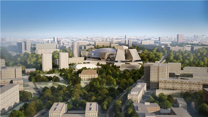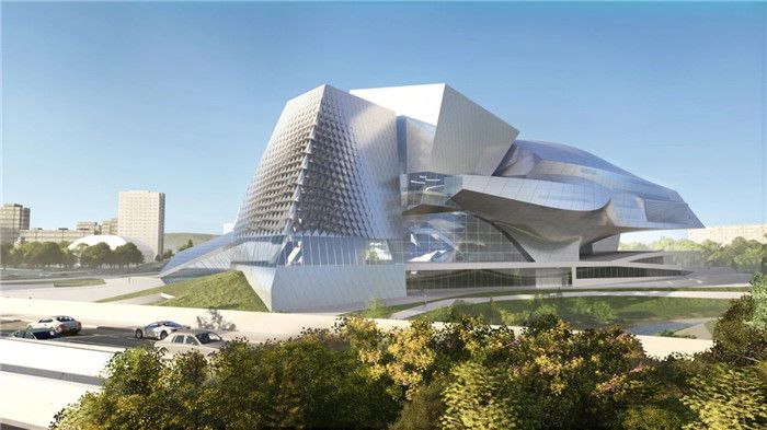 该建筑非常有辨识度,跟周围环境相映成趣。建筑具有四个主要的功能分区:“云朵剧院”优雅轻盈,博物馆和艺术中心透明如“水晶宫”,它们一起环抱着基座顶部的“24小时公共大厅”。