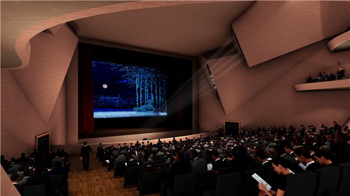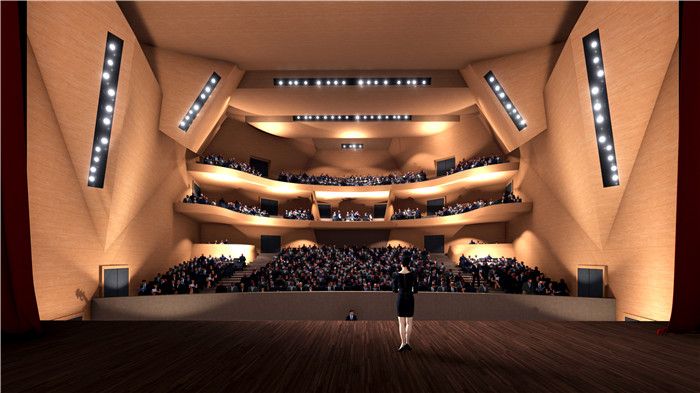 在建筑的中心是一个礼堂,包括舞台塔和后台场地区域,能容纳950人。云朵剧院里也设有其他功能分区,如办公室、贵宾室和排练室等。