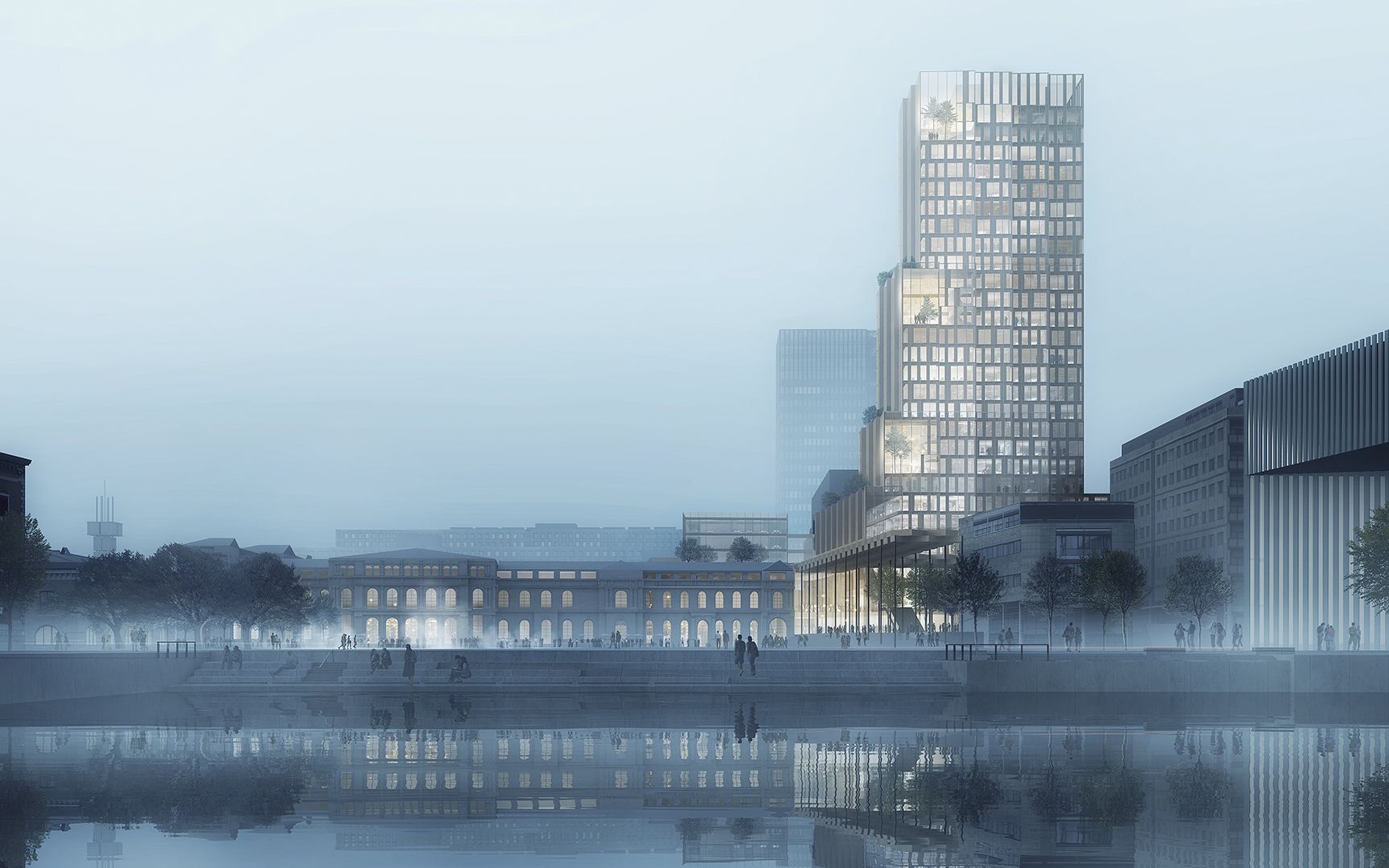 Since the multi-storey building is to contribute to the city’s life, the tower is planned to have public areas, as a spectacular vantage point that is accessible to everyone.