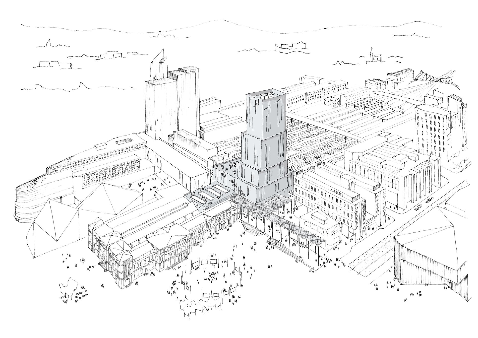 鸟瞰草图 © C.F. Møller + RRA