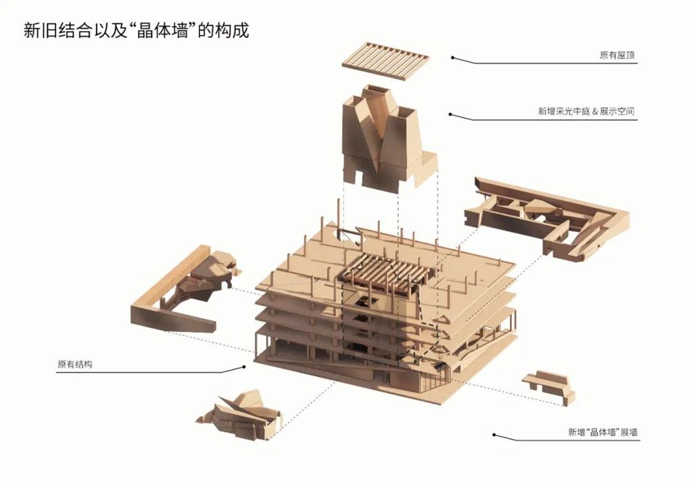 The inside and outside of the atrium spaces were divided into the museum and office space, while the interior space of the museum appears into a complicated inside of the crystal with endless growth. The archaic stones crystallized into different architectural spaces while communicating with the spaces as the exhibits across time and spaces.