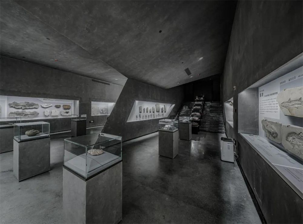 It is difficult to express controlled points in space through a two-dimensional Cartesian grid. We come up with a three-dimensional coordinate system for spatial demarcation, and the design was completely understood on the construction site. With the help of the total station apparatus, the spatial control points in the model were mapped out precisely in space, then construction becomes possible. The material used within the project is quite and sententious in order to highlight how sunlight touches the spaces and provide an appropriate exhibition environment to the archaic fossils.