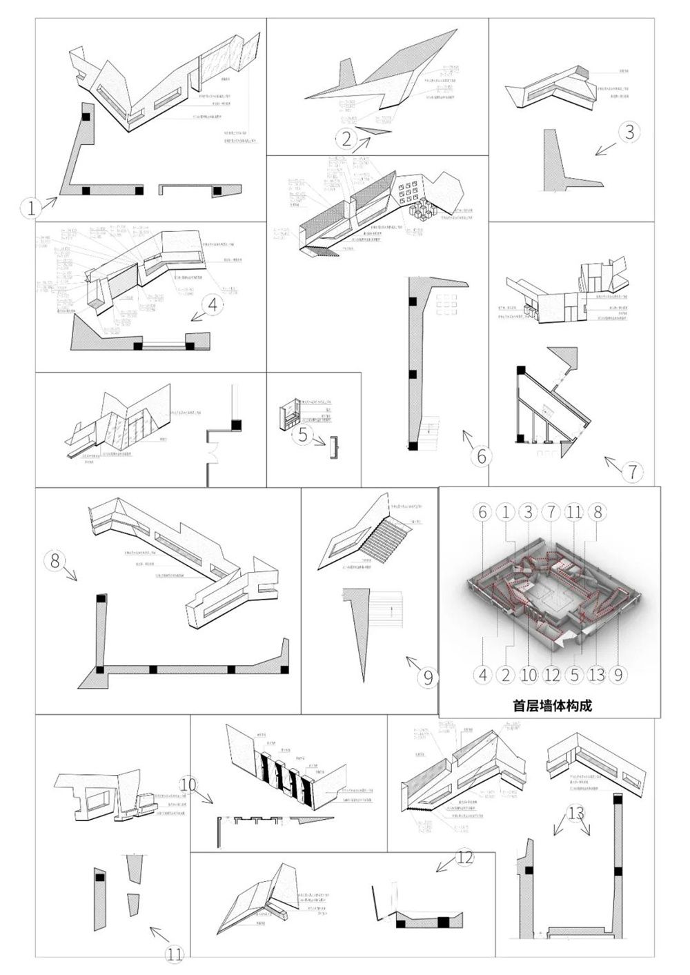 古老岩石最先出现在大陆内部的结晶基底之中,这些古老的晶体经过长时间地壳变化产生的高温、高压、混合、沉积,最终形成现在石头的样子。我们通过对石材最原始的形态:“晶体结构”的解读中获得了新的建筑语言。