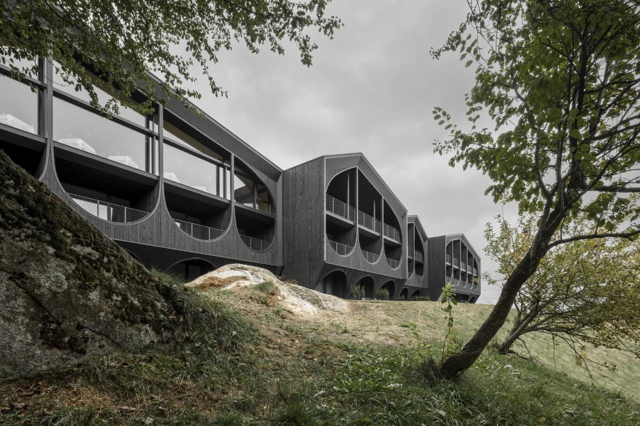 设计灵感来自当地传统建筑以及经典的木制谷仓,建筑师运用当代的建筑语言进行了全新诠释。而项目外立面的曲线形状的灵感来自当地农民使用的干草叉。马兰扎虽只是博尔扎诺省的一个小村庄,但有着重要的农业背景。