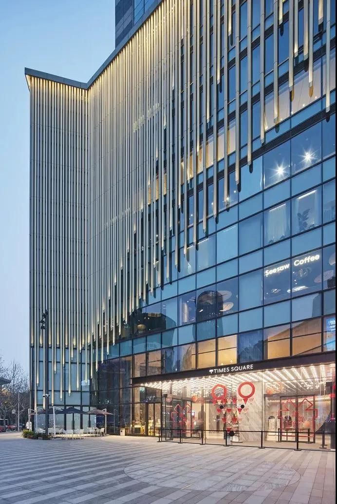 LED灯带点亮幕帘状的铝板外立面,与建筑细节完美融合