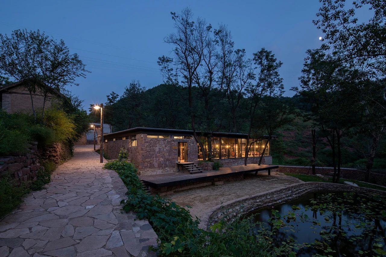 The project begins with site selection. As with most projects of the design team, the site is not designated, but the result of careful selection during the survey. The old village of Hanhonggou is of a long and narrow shuttle-shaped landform. The site is located in the middle and rear of the old village, with ditches and open spaces in front of it. Because it is just on the middle line of the geographical long axis, the site naturally becomes the focus of the line of sight, and is also the most ideal location for viewing the central landscape of the village. The logic of choosing to set up the public buildings for leisure here is similar to the establishment of pavilions in traditional Chinese gardens: It is not only the foothold for viewing the landscape, but also the main body of the landscape to be viewed.