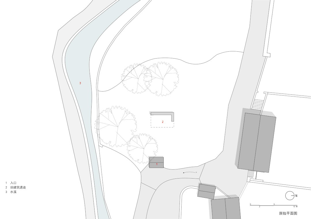 The site was an abandoned homestead in the village that is said to once be the location of the Firearms Repair Bureau of Taiyue Military Region during the Anti-Japanese War. Most of the original houses have collapsed, leaving only half of the earthen house and the foundation site. The existing courtyard gate was later rebuilt according to the local residential form. The dramatic theme of the Firearms Repair Bureau is also one of the reasons for choosing this site, which also provides a basis for the selection of subsequent design languages.