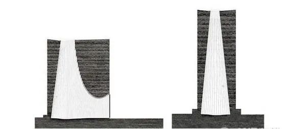 每个切片为5公分厚,每个切片间的缝隙为40公分。所有这些切片组合形成整个墙壁,屋顶以及塔楼。这些切片形成体量的内部是另外一种形式的切割,以形成一种更加自由形态的空间。