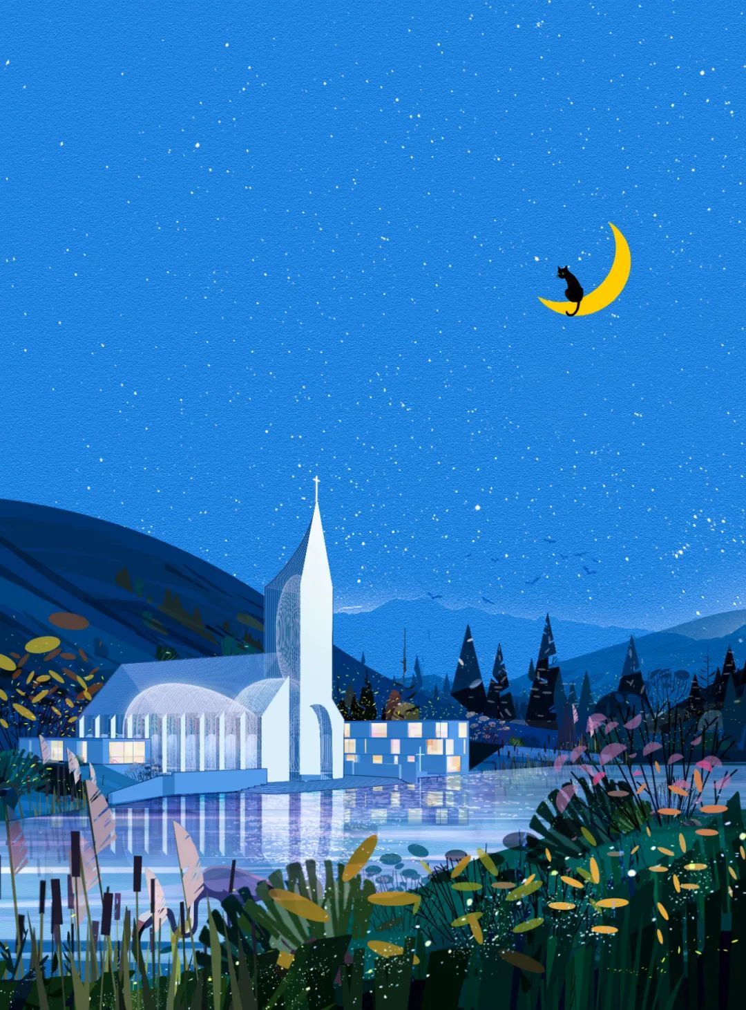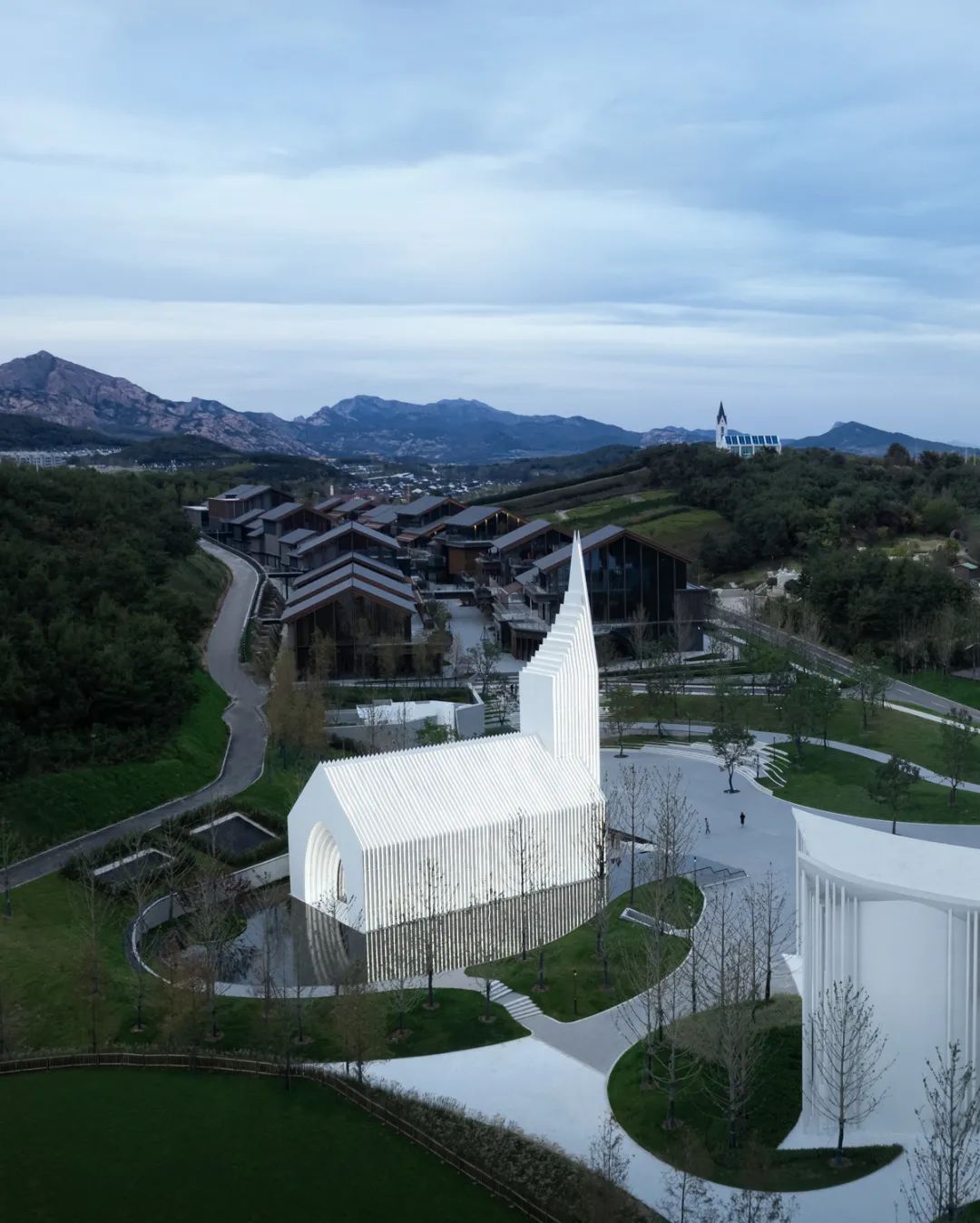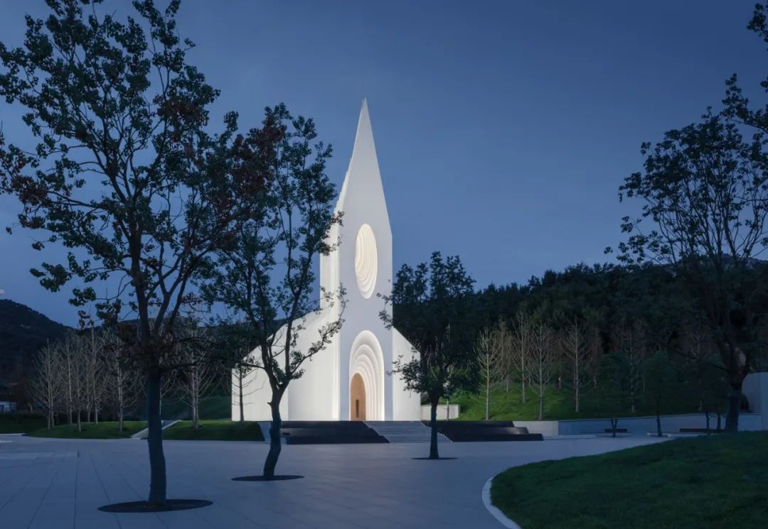 层叠的白色切片在柔化室内光线的同时,也包裹了建筑的主体框架和构造系统,使整个月空礼堂呈现出一种简明而抽象的氛围,它既是属于当代的审美倾向,又是对传统礼堂形态的呼应,是传统与当代的一种融合。