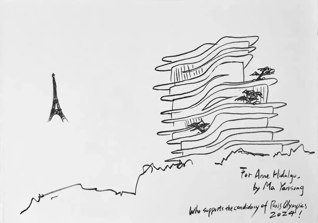 为支持巴黎申办2024年奥运会,马岩松送给巴黎市长Anne Hidalgo的UNIC手稿