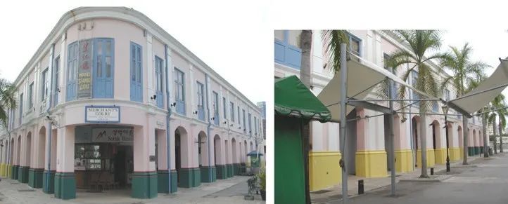 早期的码头建筑具有东西方的混合特色,双层的多利式支柱,圆形拱门,高大的窗,三角顶,中国式屋瓦。