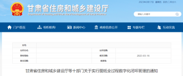 3月23日,记者从省住建厅了解到,日前该厅联合省发改委、省公安厅、省自然资源厅等十部门下发《关于实行图纸全过程数字化闭环管理的通知》。