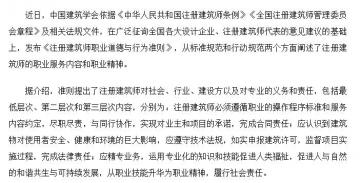 近日,中国建筑学会依据《中华人民共和国注册建筑师条例》《全国注册建筑师管理委员会章程》及相关法规文件,在征询全国各大设计企业、注册建筑师代表的意见建议的基础上,发布《注册建筑师职业道德与行为准则》。