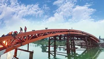 近日,随着最后一个钢箱梁成功完成吊装对接,由中铁八局承建的园博园内第二座步行桥顺利合龙。7月底,园博园内第一座步行桥已经合龙。