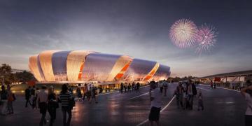 顶级专业足球场足球场以荷花绽放为设计理念,凸显浓郁的中国文化特色,将打造为规模最大、档次最高、配套最全、科技含量最高、座位数最多的国际顶级专业足球场