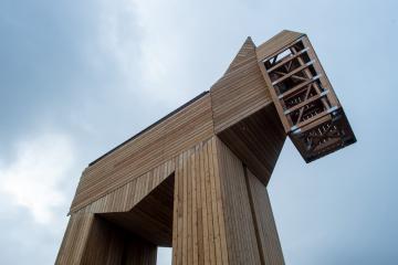 当地时间2020年2月19日,德国萨克森-安哈尔特州施滕达尔镇,当地一匹正在建造中的“特洛伊木马”矗立在 Winckelmann 博物馆旁。