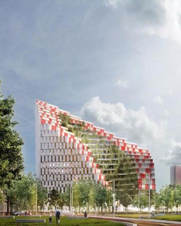 近日,Mario Cucinella Architects (MC A) 在阿尔巴尼亚地拉那地区设计的Ekspozita大厦通过了审议,这是一个带有绿洲的混合用途大楼方案,预计将于2023年正式建成投入使用。