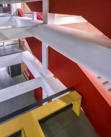 清华大学第四教学楼又名“真维斯”楼,1990年9月竣工并交付使用。第四教学楼分为西侧70人大教室共四层和东侧共五层的公共区域。主要人流由东侧步行剪刀梯作为主体垂直交通带动。