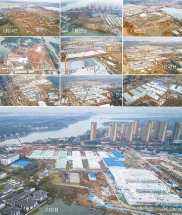 2月3日晚,三所“方舱医院”在武汉开建,用于收治新型冠状病毒感染的肺炎轻症患者。