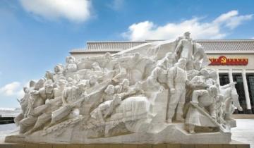 大型雕塑《旗帜》气势如虹,《信仰》《伟业》《攻坚》《追梦》四组大型雕塑分别对应“四个伟大”主题。