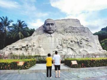 细看雕塑,孙中山眼睛有神且坚定,石雕下半部分的革命群众也个个生动有形。
