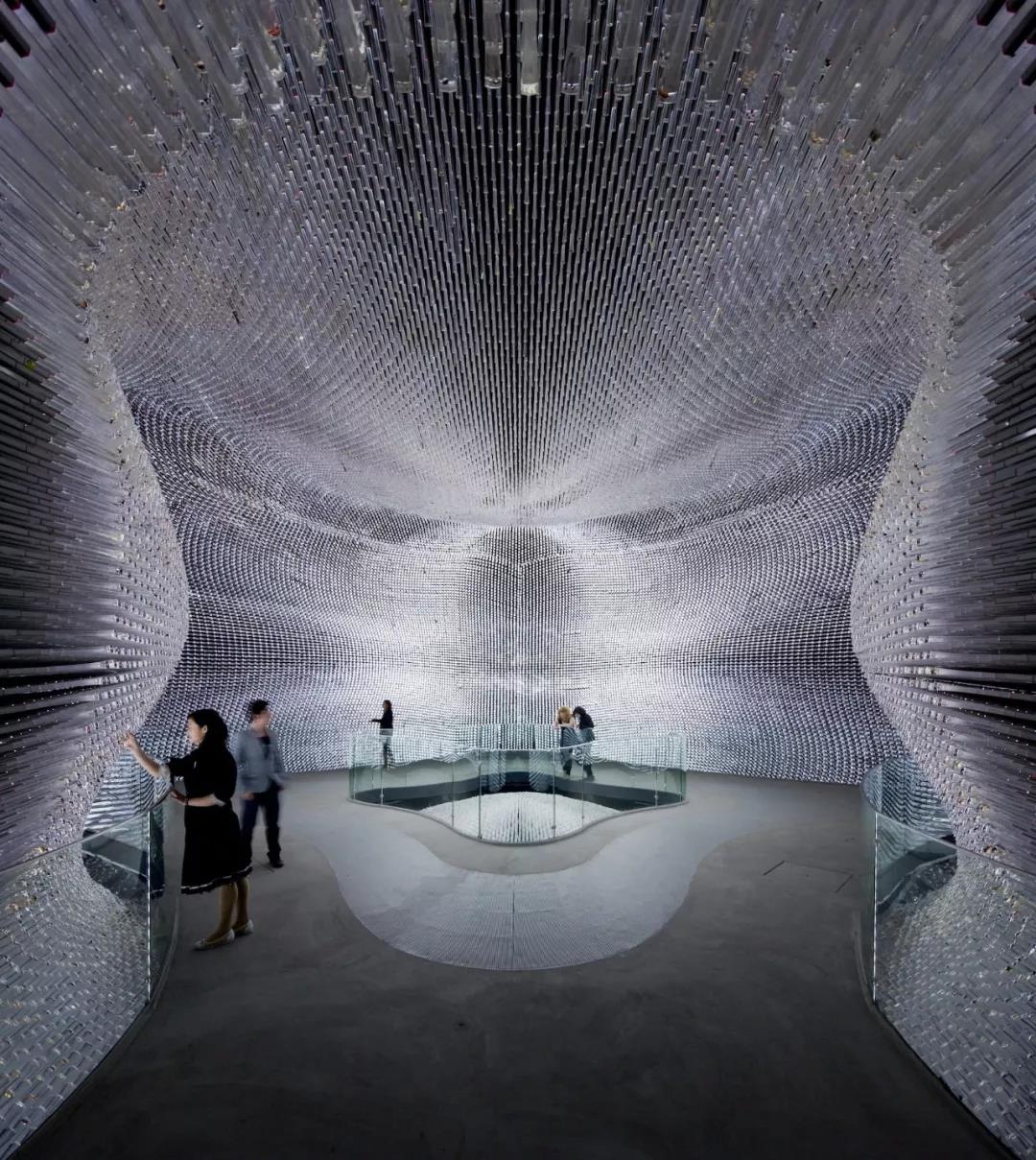 上海世博会英国馆室内,可见亚克力管内的种子©Hufton + Crow